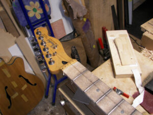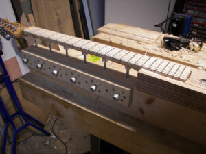 here is a jig in action for the simulation of the string tension usually present on the guitar neck,my previous version was a block underneath the peghead